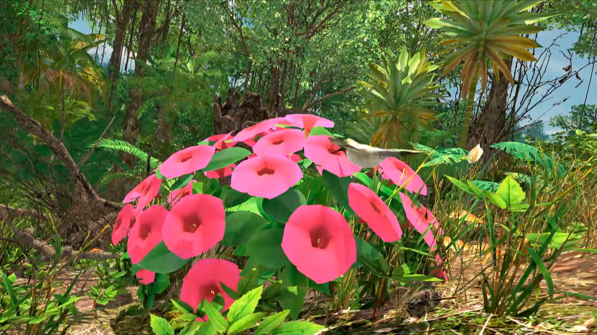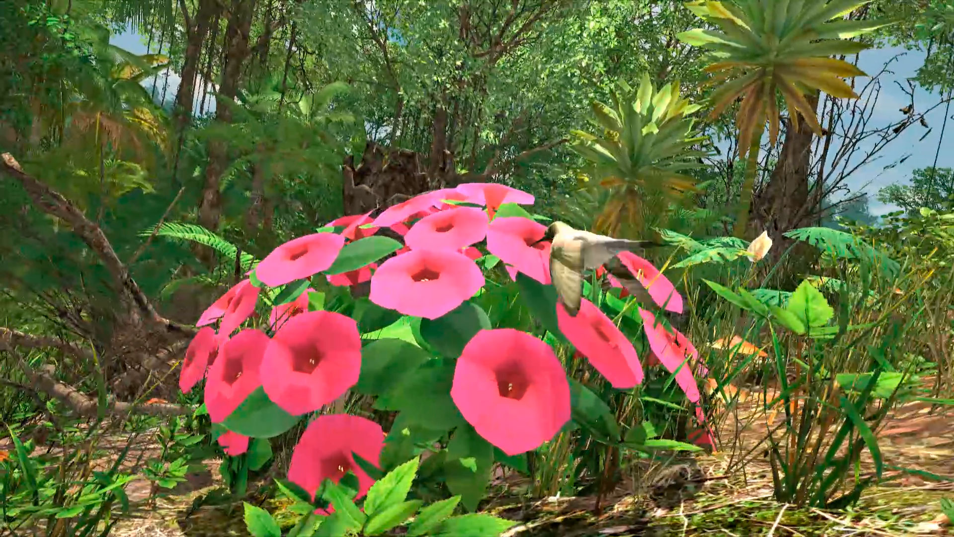 Mira este colibrí. Está alimentándose con el néctar de la flor mientras la poliniza.