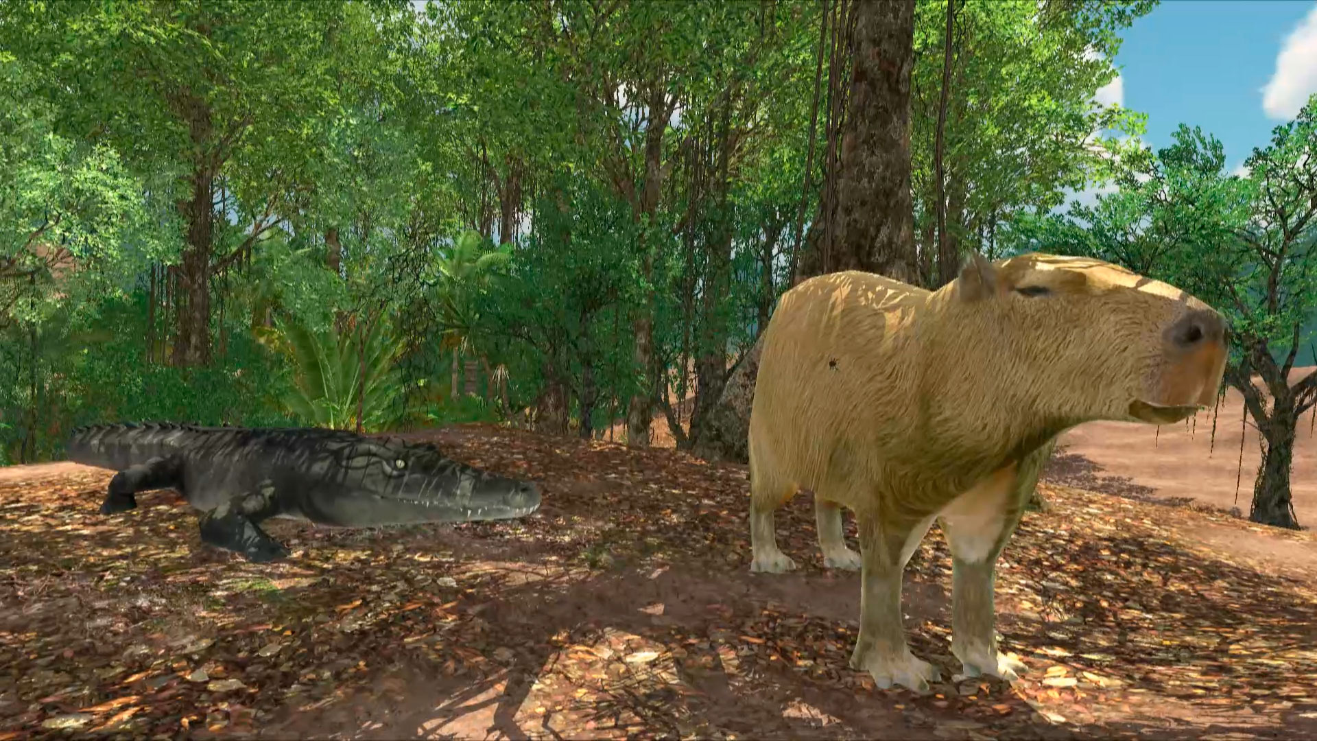 ¡Mira rápido... un cocodrilo acechando al capibara!